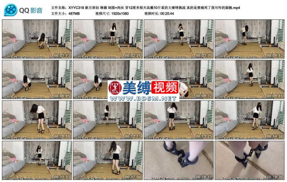 新月原创 琳媚 制服+肉丝 穿12厘米恨天高戴10斤重的大镣铐挑战 真的是要痛死了我可...