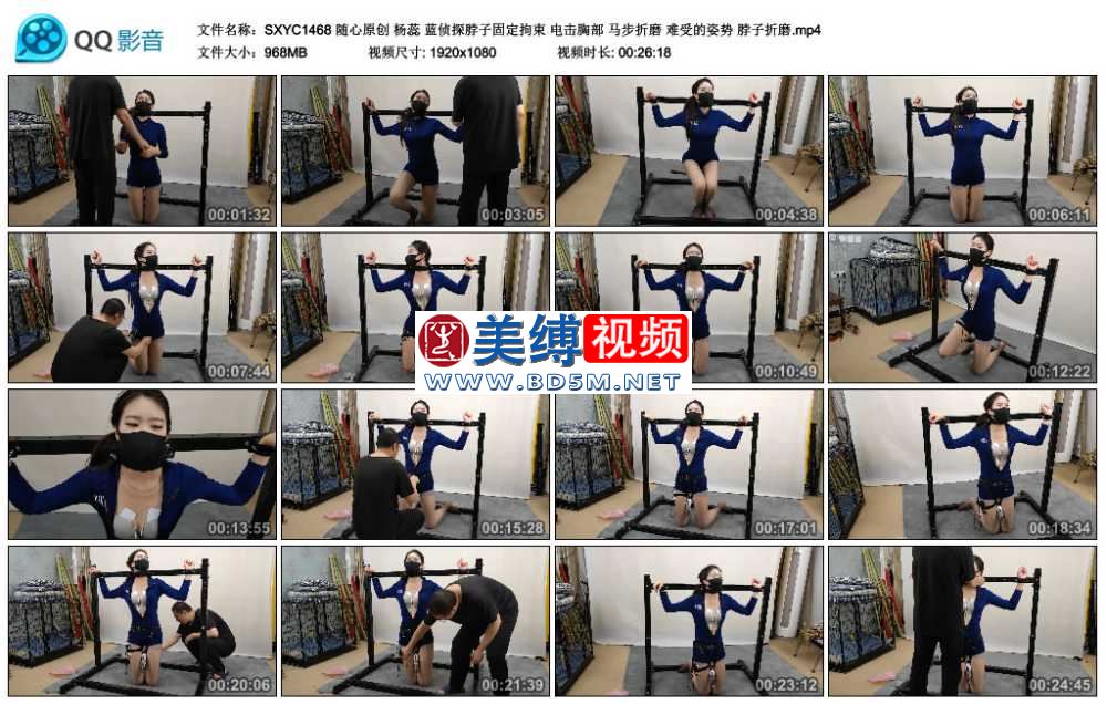 随心原创 杨蕊 蓝侦探脖子固定拘束 电击胸部 马步折磨 难受的姿势 脖子折磨 |